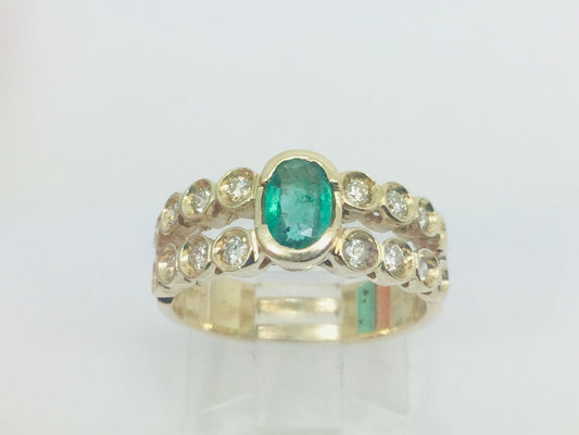 14k Yellow Gold Oval Cut 0.50ct Emerald May Birthstone & 0.40ct Diamond Row Set Ring