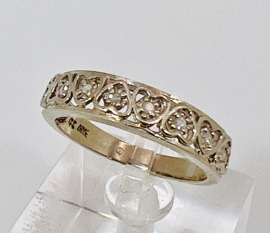 10k White Gold Round Cut 0.08ct Diamond Heart Band Ring