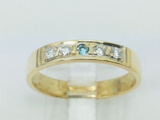 10k Yellow Gold Round Cut 14pt Diamond & Blue Topaz Row Set Band Ring