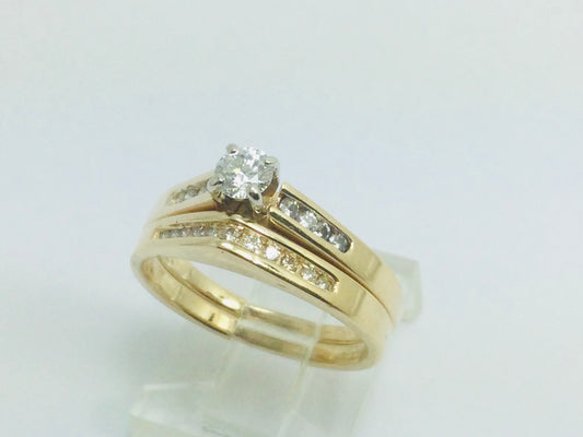 14k Yellow Gold Round Cut 39pt Diamond Channel Set Engagement Ring & Wedding Band Set