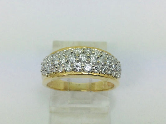 14k Yellow Gold 75pt Round Cut Diamond Row Set Cluster Ring