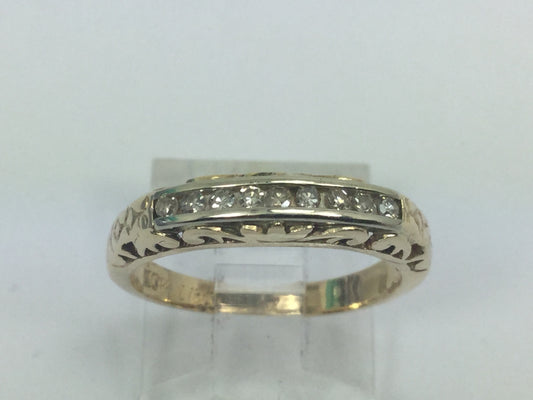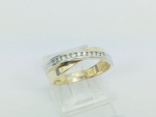 10k Yellow & White Gold Round Cut 0.13ct Channel Set Diamond Ring