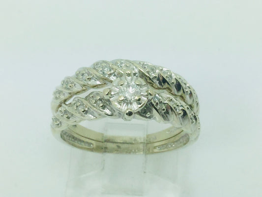 10k White Gold Round Cut 25pt Diamond Illusion Set Engagement Ring & Wedding Band Set