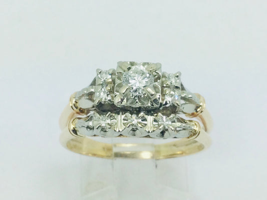 14k White and Yellow Gold 32.5pt Round Cut Diamond Vintage Engagement Ring & Wedding Band