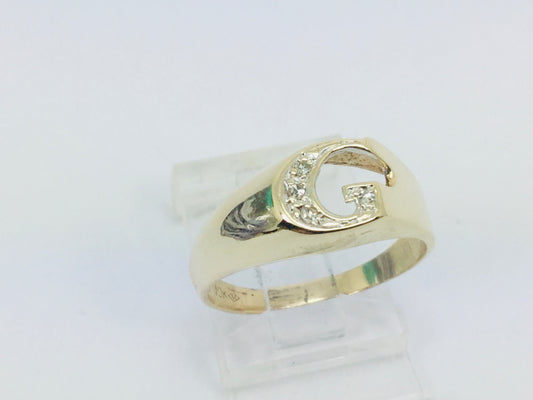 10k Yellow Gold Round Cut 4pt Diamond Letter 'G' Ring