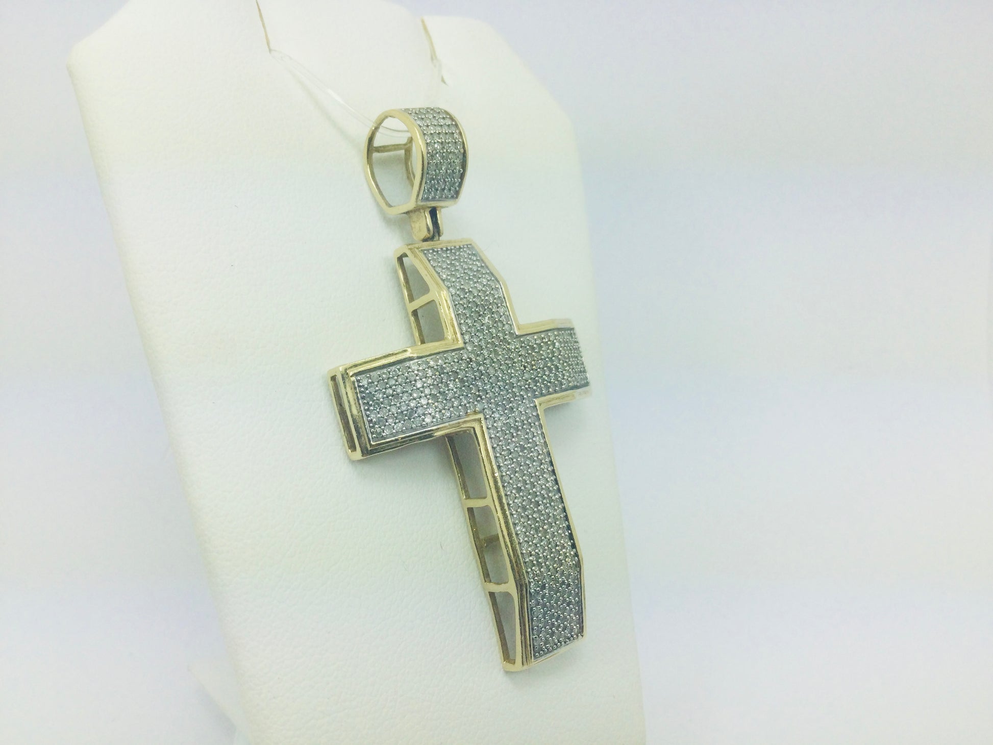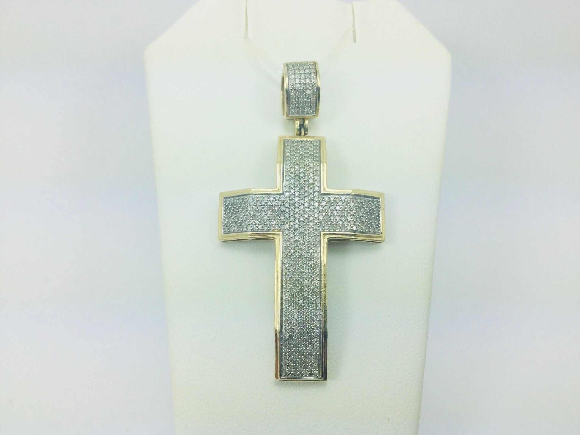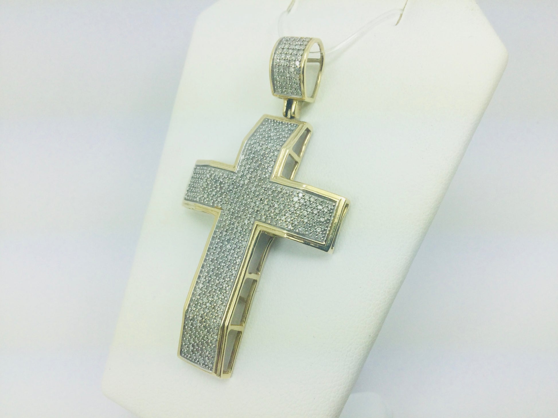 10k Yellow Gold Round Cut 2.6ct Diamond Cross Pendent