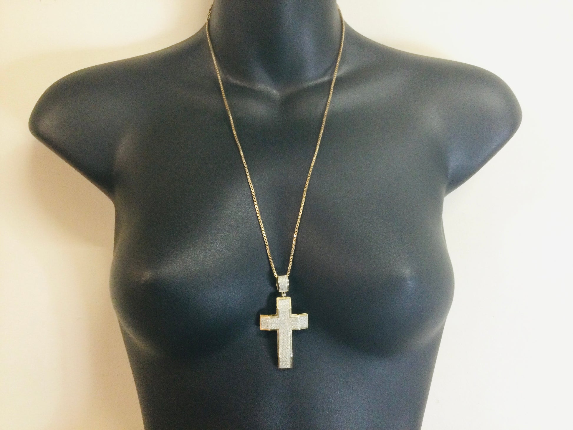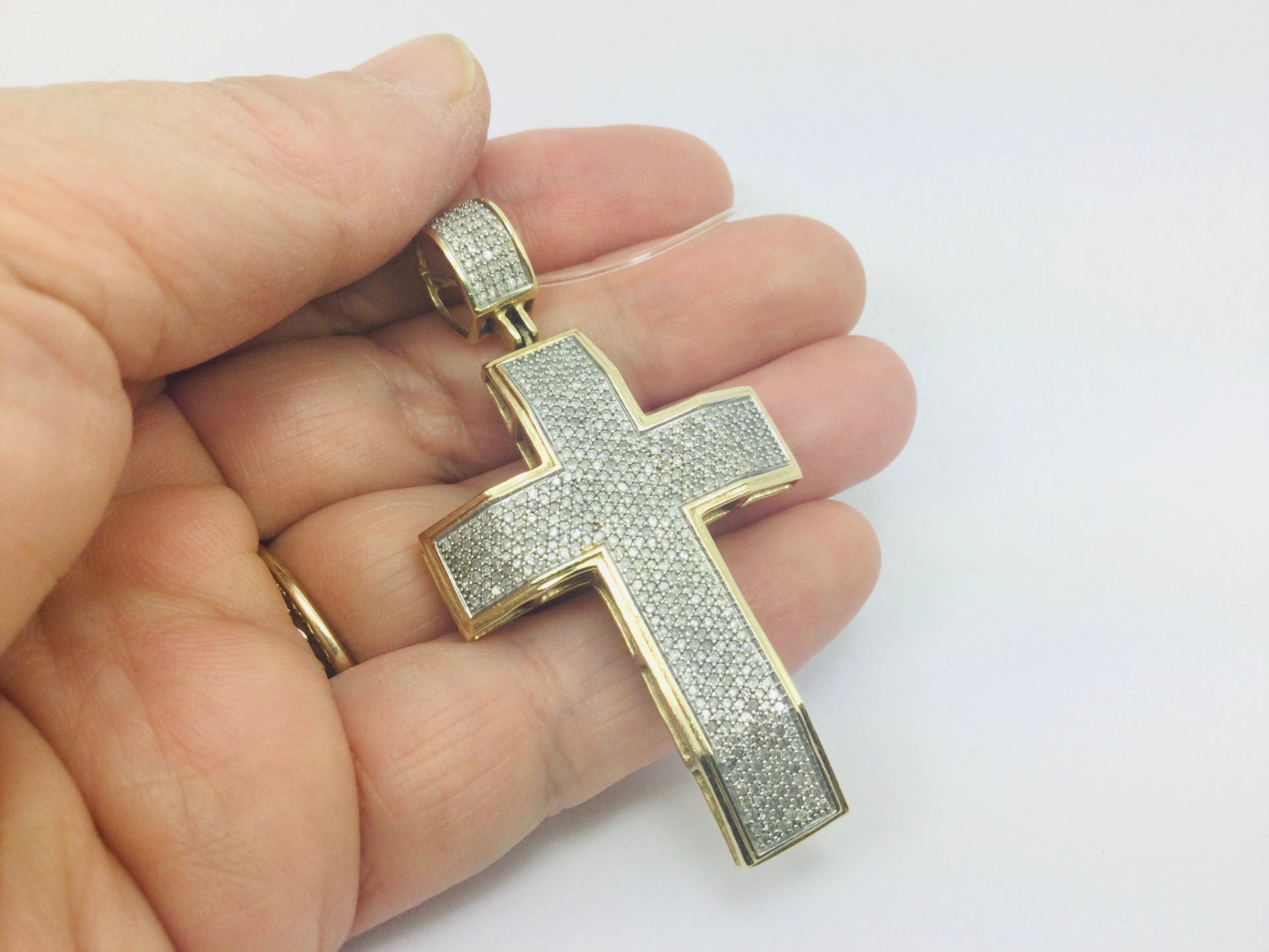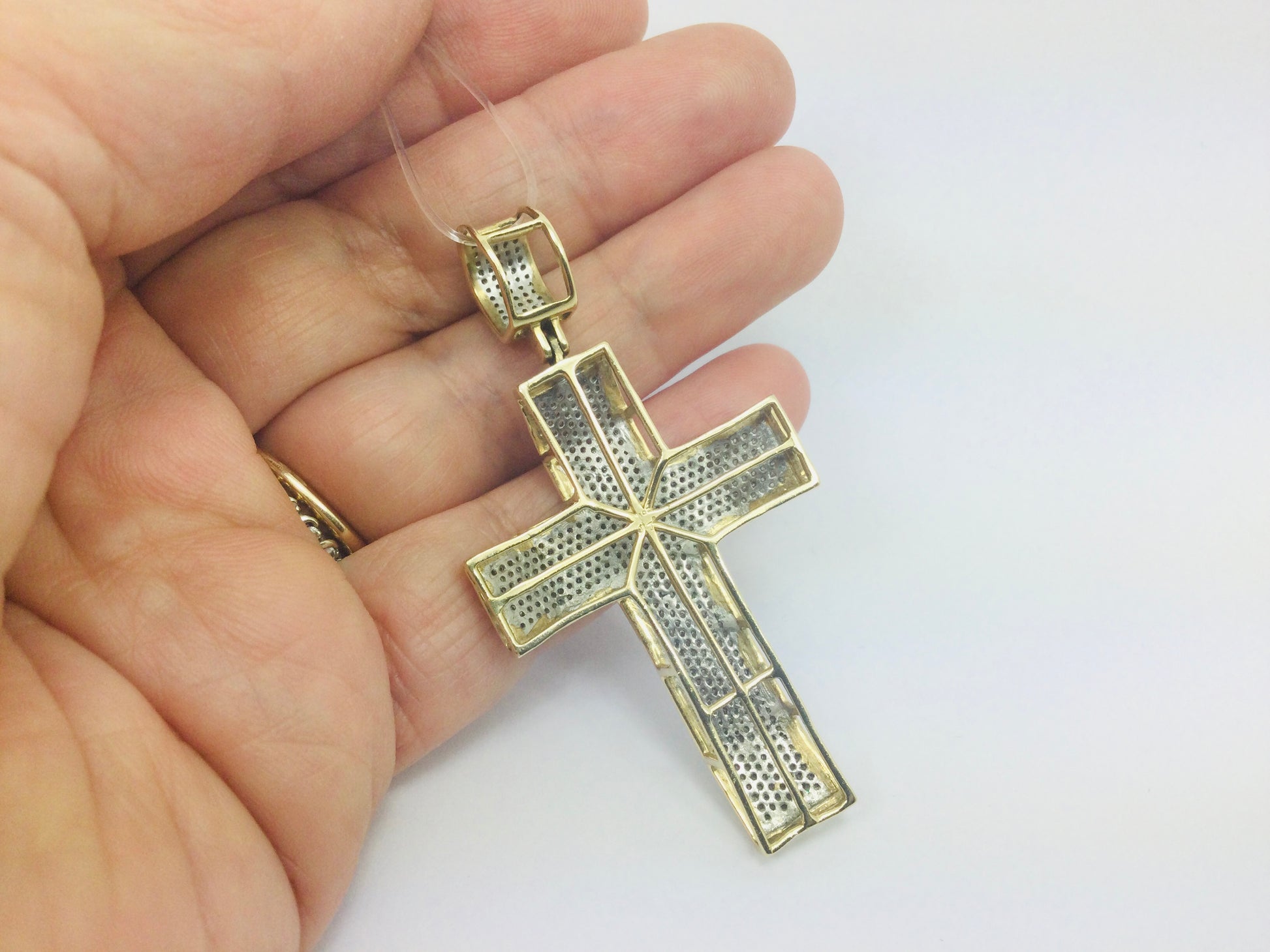 10k Yellow Gold Round Cut 2.6ct Diamond Cross Pendent