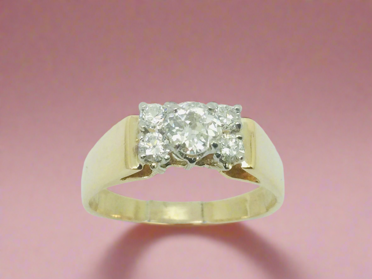 14k Yellow Gold 0.50ct Mine Cut Diamond , 0.78ct TDW Ring